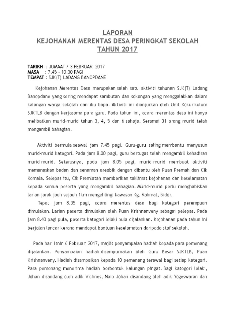 Sekolah Menengah Kebangsaan Lktp Belitong Pelan Pelan Laluan Kejohanan Merentas Desa 2017 Laluan Peserta Merentas Desa Smk Lktp Belitong 2017 0700 Bacaan Surah Yasin 0740 Pagi Guru Kelas Mengambil Pdf Document