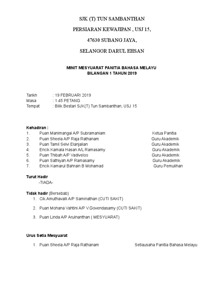 Minit Mesyuarat Kokurikulum Kali Pertama 2019 Converted Pages 1 5 Text Version Anyflip