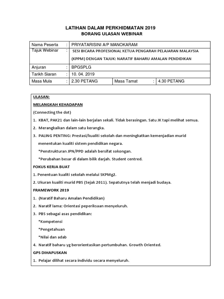 Catatan Guru Besar Naratif Baharu Amalan Pendidikan Fokus Dan Gerak Kerja Profesional Kpm 2019
