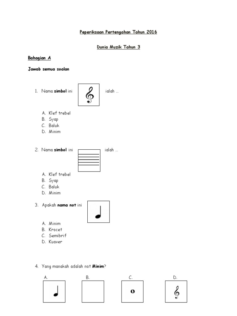 Ujian Pertengahan Tahun 2017 Dunia Muzik Tahun 3 Nama Kelas Bahagian A 10 Markah