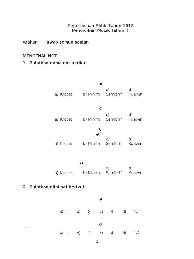 Soalan Muzik Thn 4 Jawab Semua Soalan Nama Simbol Ini Klef Bass Syap Ialah Klef Trebel Flat Ruang 3 Garis Dan 4 Ruang 5 Garis Dan 5 Ruang Nilainya 2 Nilainya 2 Nilainya 1