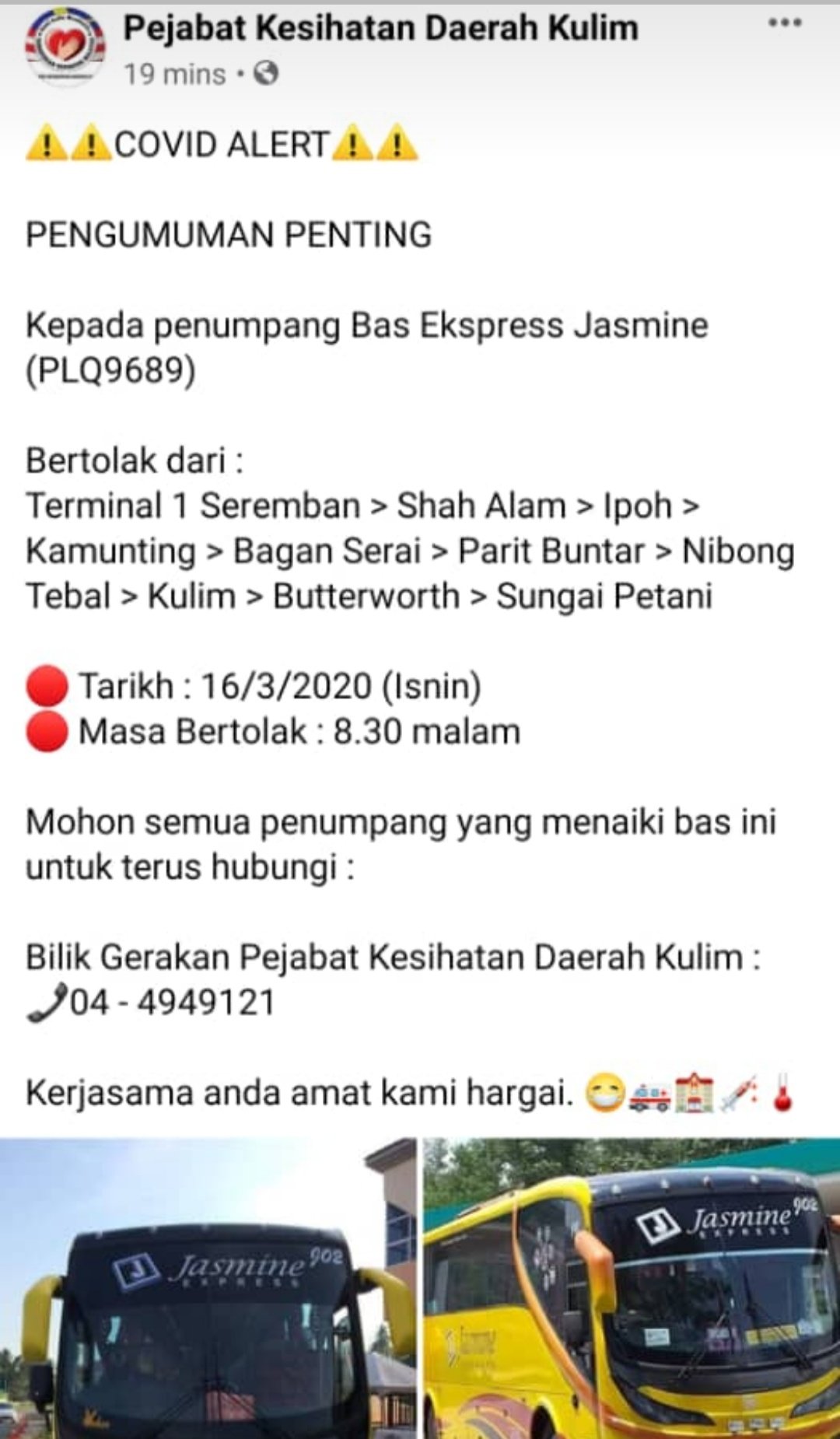Kkmalaysia On Twitter Covidー19 Alert Mereka Yang Terlibat Sila Hubungi Bilik Gerakan Pejabat Kesihatan Daerah Kulim 04 4949121