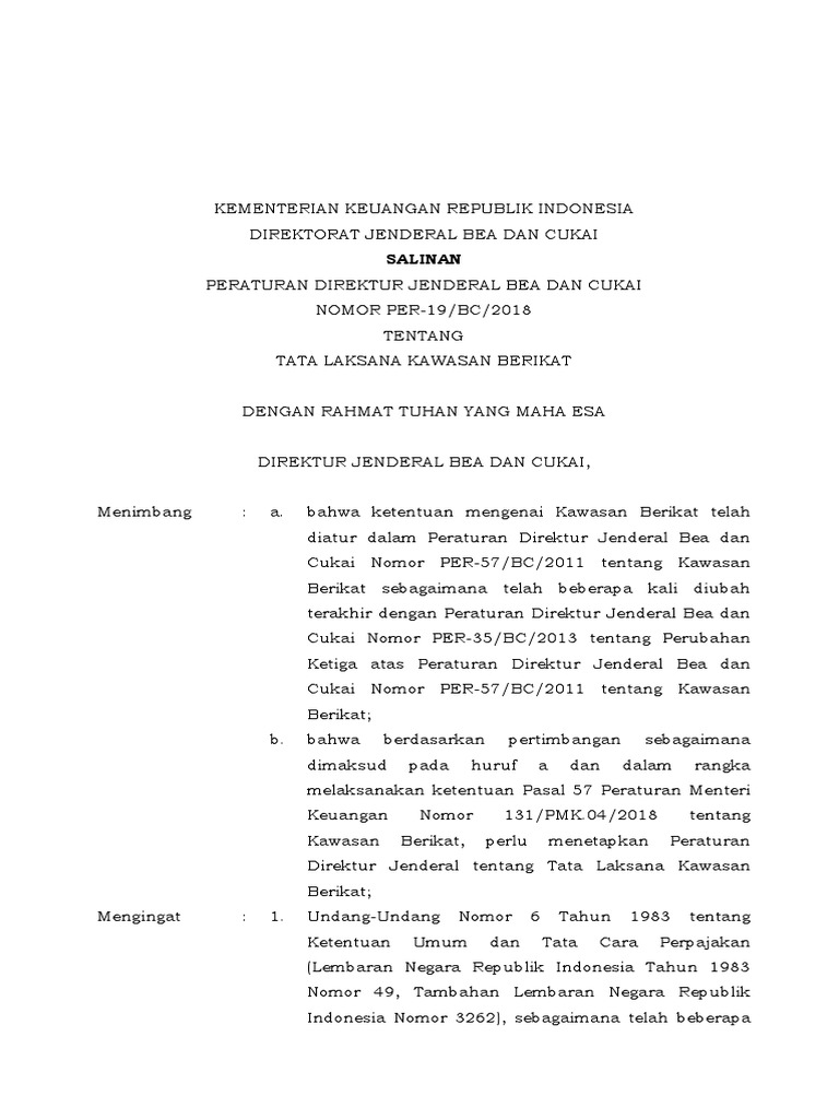 Perdirjen Bc 2018 19 Tata Laksana Kawasan Berikat Pdf