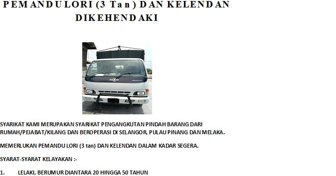 Kerja Kosong Pemandu Lori 3 Tan Kerja Kosong Malaysia