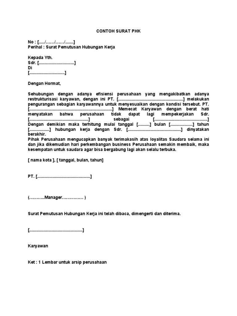 30 Contoh Surat Pemutusan Hubungan Kerja Phk Dengan Berbagai Alasan