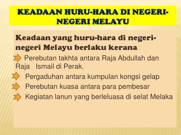 Keadaan Huru Hara Di Negeri Negeri Melayu Pptx