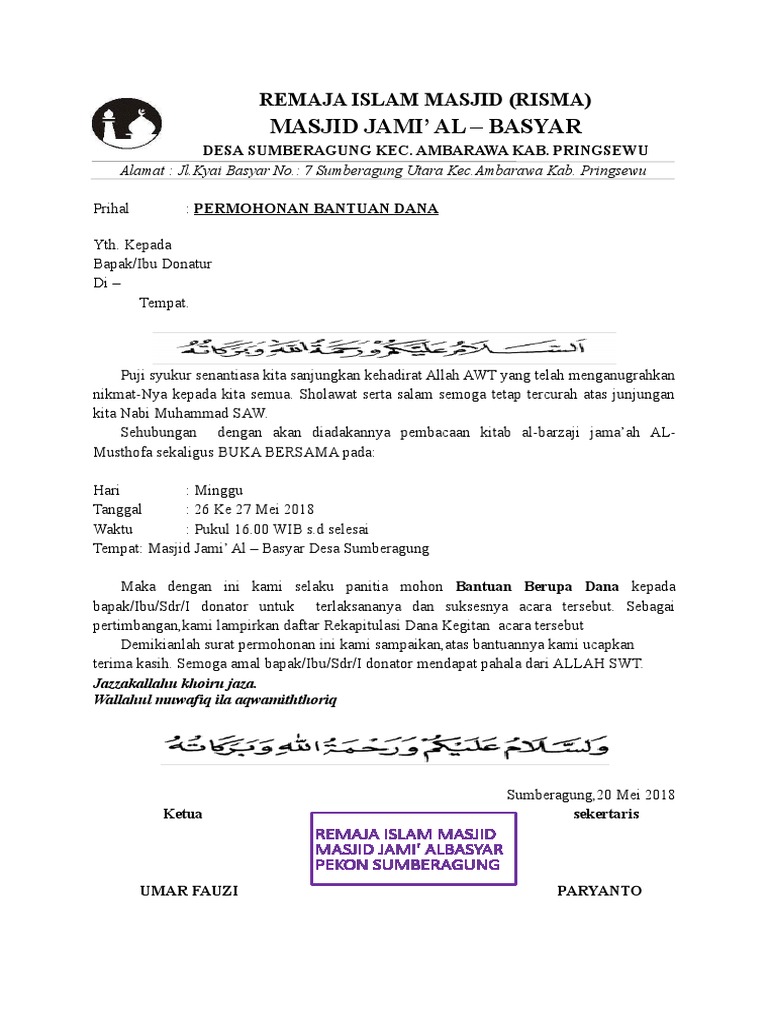 Contoh Surat Permohonan Dana Maulid Nabi Contoh Seputar Surat
