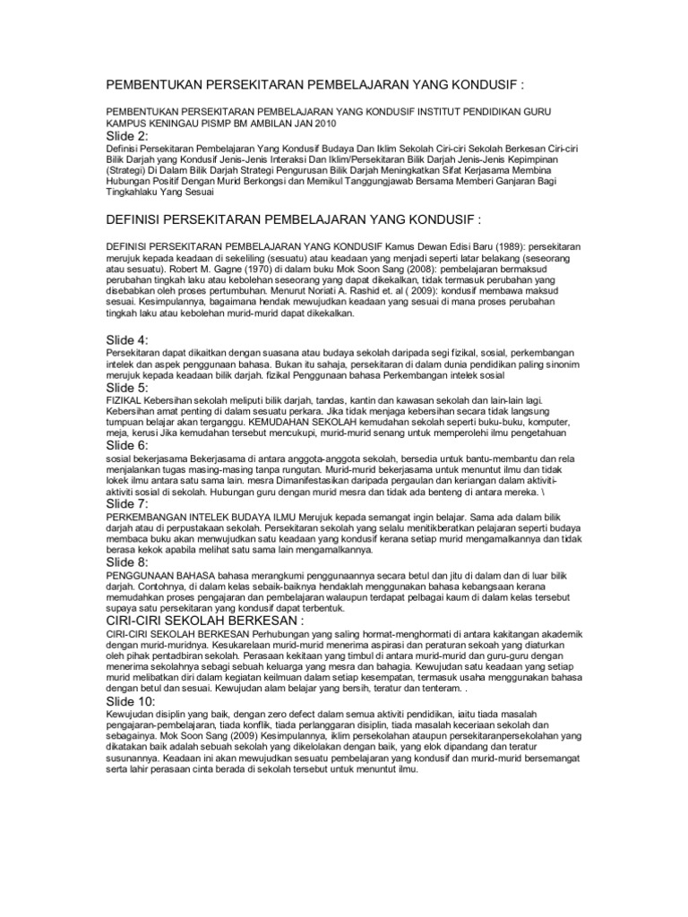 Pembentukan Persekitaran Pembelajaran Yang Kondusif Pdf Document