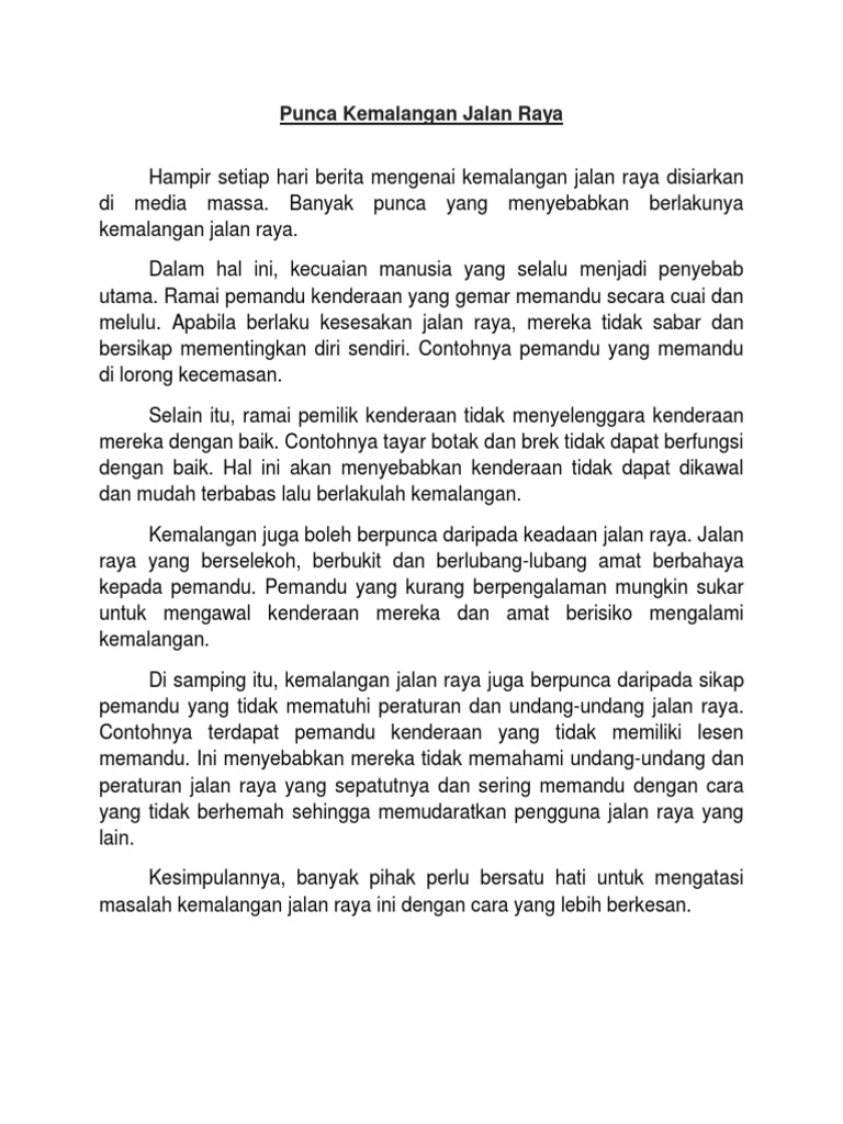 Contoh Karangan Punca Kemalangan Jalan Raya Contoh Jol