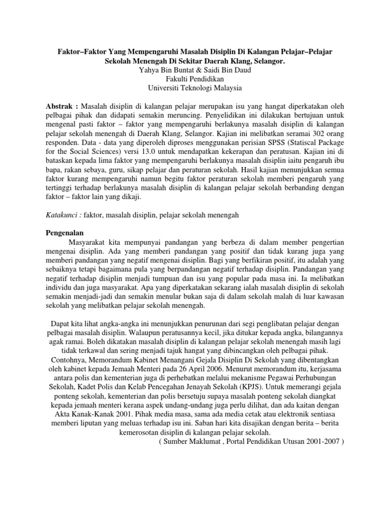Pdf Faktor Faktor Yang Mempengaruhi Masalah Disiplin Di Kalangan Pelajar Pelajar Sekolah Menengah Di Sekitar Daerah Klang Selangor Yahya Buntat Academia Edu