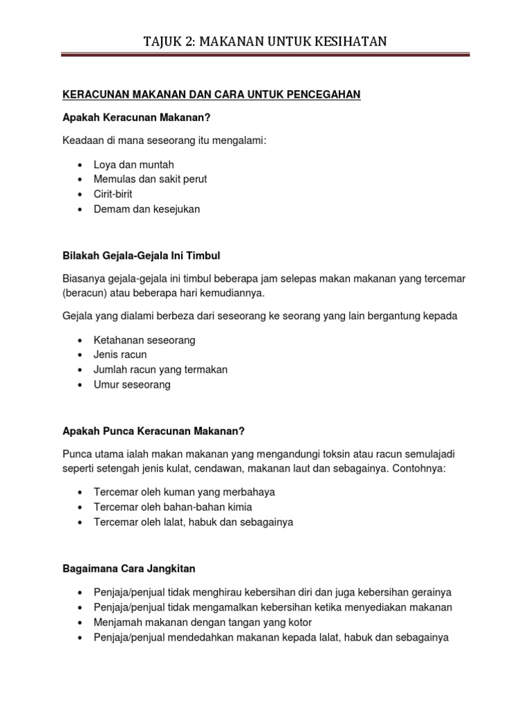 Punca Dan Usaha Untuk Menangani Keracunan Makanan Dalam Kalangan Murid Sekolah