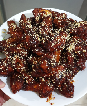 Che nom akan sediakan dakganjeong atau ayam goreng korea yang bersalut dengan sos istimewa. Karena keseringan nonton youn s kitchen sama suami akhirnya jadi pengen nyoba masakan korea. Ternyata emang endol daripada beli lebih hemat kalo bikin sendiri. Korean spicy chicken ni adalah ayam yang digoreng rangup dan disalut dengan sambal.