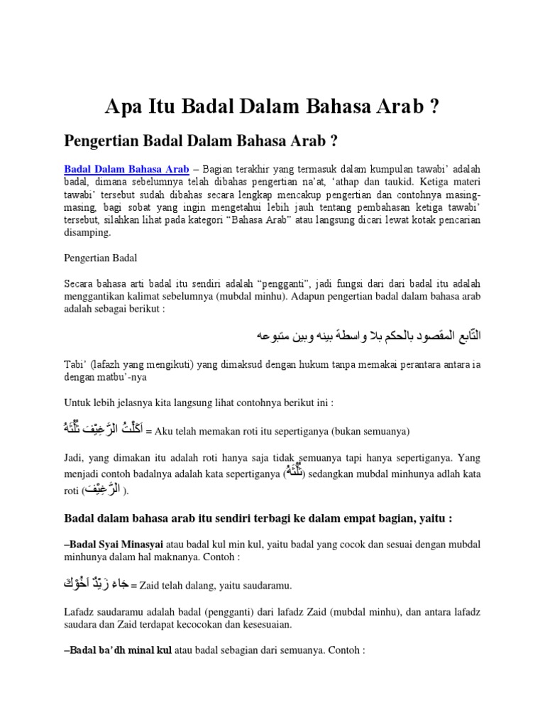 Apa Itu Badal Dalam Bahasa Arab