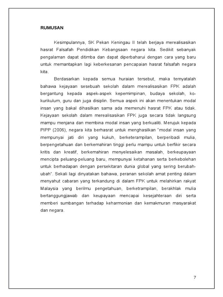 Rumusan Dan Refleksi Falsafah Pendidikan Di Malaysia