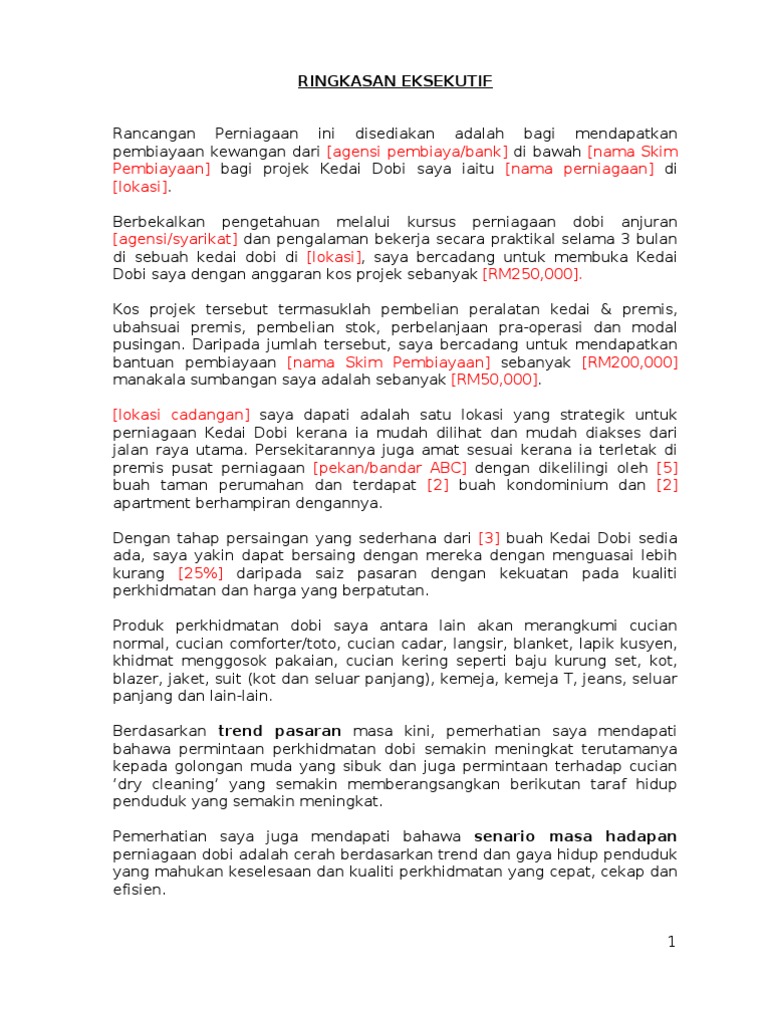Contoh Business Plan Kedai Dobi Contoh 290917