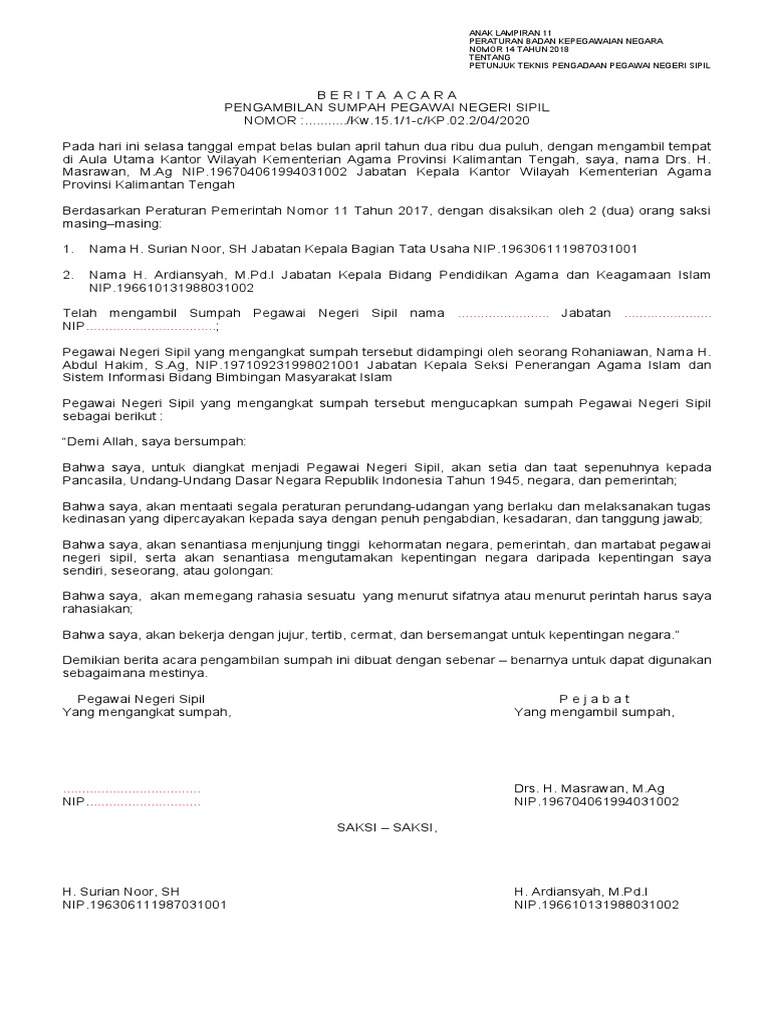 Berita Acara Pengambilan Sumpah Pns 1